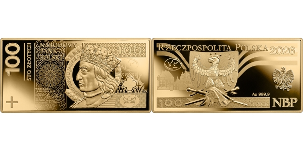 Narodowy Bank Polski przedstawił wizerunki i ceny monet Banknot o nominale 100 zł z serii Polskie banknoty obiegowe. Data emisji to 09-02-2026.